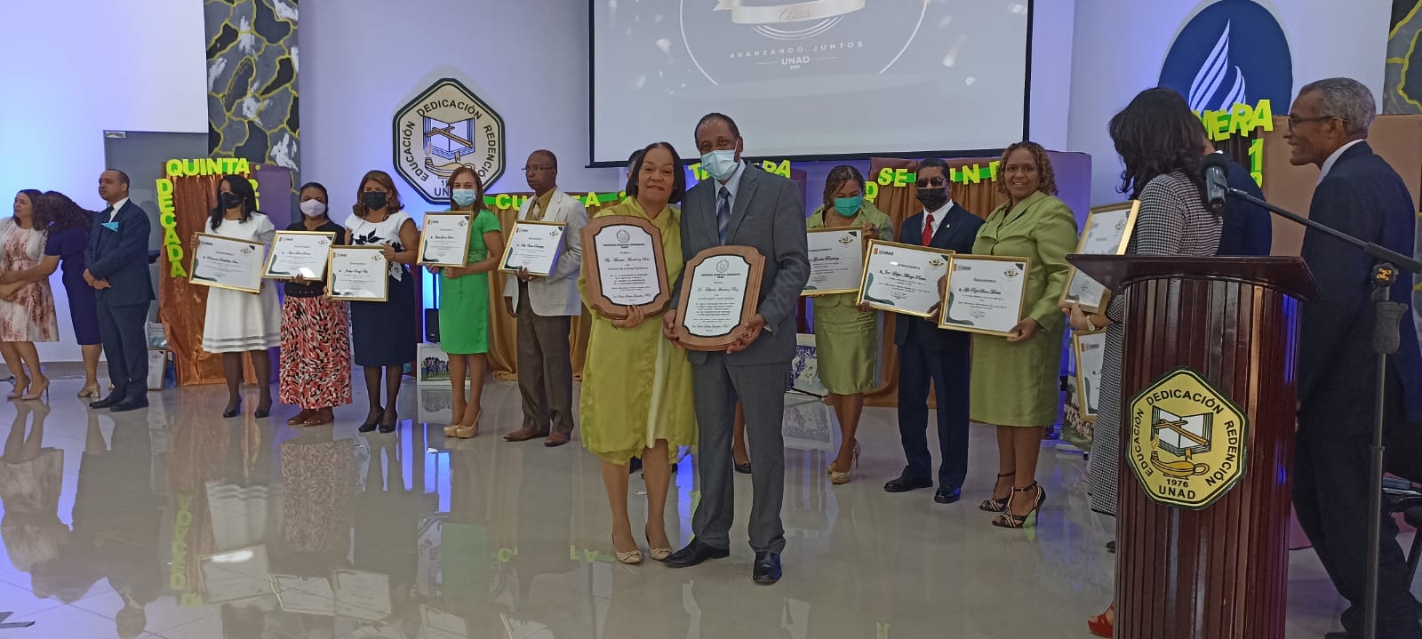 Los asistentes a la ceremonia vivieron un manojo de emociones al recorrer los hitos del crecimiento de la UNAD en apoyo al cumplimiento de la gran comisión de la predicación del evangelio. En la primera parte del programa se presentaron egresados que, escuetamente, reseñaron cómo la formación recibida en estas aulas ha sido una catapulta para sus vidas, tanto en su carácter personal, como familiar, laboral y espiritual. Hubo un despliegue de talento musical, destacado en cada década, combinando magistralmente escenas de manera presencial con escenas virtuales, así como lo pasado con lo presente. Entre los artistas participantes se destacaron, Bienvenido Javier Domínguez (grabado), Adelyana Reyes, Andrés Santos, Déborah Moise y miembros de todos los tiempos de la Agrupación Cantares, así como los hermanos Inoa.